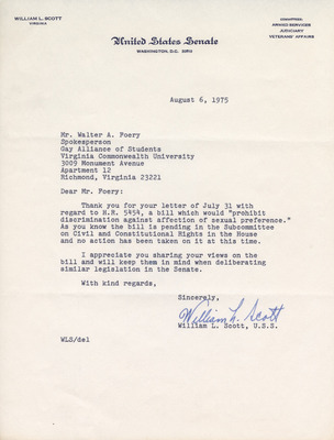 Letter from William L. Scott to Walter A. Foery, 1975 August 6