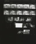 A contact sheet of multiple photographs of VCU professors Dr. Leonard Smock, Dr. Greg Garman, and Dr. John Pagels, and holding and posing with various equipment. Smock and Pagels are faculty emeriti and Garman is faculty in the School of Life Sciences and Sustainability. On the bottom of the contact sheet, there are two unnamed individuals posing at the same location.