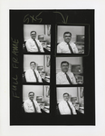 A contact sheet of multiple photographs of VCU professor Dr. John Rosencraus sitting in front of a computer. Rosencraus taught pharmacology for over 40 years at VCU.