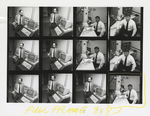 A contact sheet of multiple photographs of two faculty members. On the left, Dr. Jeffery Kreutzer is displaying a computer. On the right, an unnamed faculty member is shown sitting near various equipment.