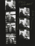 A contact sheet of multiple photographs of VCU professor Dr. Louis S. Harris either standing in front of a bookshelf or typing on a computer, with a stack of papers seen on the side. Harris was a part of the Department of Pharmacology and Toxicology for 44 years.
