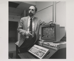 A photographic print of VCU professor Dr. Jeffrey Kreutzer displaying a computer. Kreutzer served as a faculty member in the School of Medicine from 1983 to 2020.