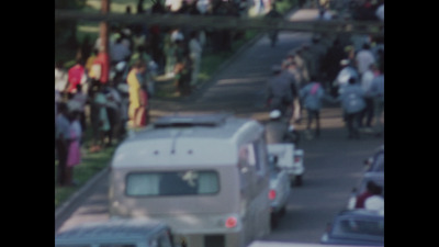 This reel contains footage of cars parked on streets, police officers at Richmond City Jail, and protesters (adults and children) in front of the jail on September 15, 1967. Individuals protested the jailing of Black power activist Jamil Al-Amin (H. Rap Brown) as he fought extradition to Maryland. Another angle of this footage is available via Youtube. This appears to be a group of majority Black participants.