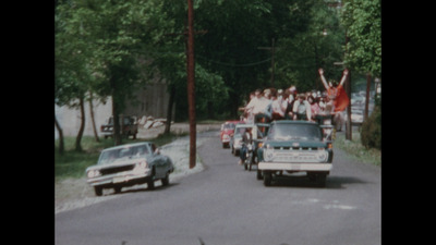 This reel contains footage of individuals participating in a Ku Klux Klan car caravan in the Richmond area. Cars drive down two unidentified streets, with United States of America and/or Confederate flags on their cars. The footage is undated, however it appears that this occurred on July 9, 1967.